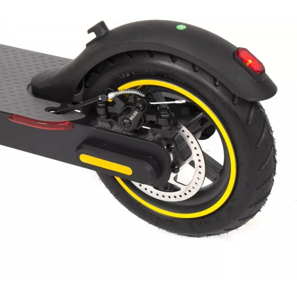 Задний тормоз Ободные тормоза работают аналогично тормозам на велосипедах. Барабанный тормоз находится внутри корпуса колеса и лучше защищен от грязи и влаги, в следствии чего меньше изнашивается и служит дольше. Дисковый тормоз - наиболее подходящий вариант для электросамоката. В отличии от барабанного тормоза дисковый проще в настройке и регулировке. Дисковые тормоза разделяются на два типа: Гидравлический дисковый тормоз - мягкое нажатие (за счет гидравлики) на рычаг тормоза и мощный эффект торможения. Механический дисковый тормоз - проще в обслуживании, но чуть более тугой при нажатии. Электрический тормоз - торможение осуществляется электромотором. обеспечивая быстрое, но плавное торможение. Ножной тормоз - самый простой тип тормоза электросамоката. Торможение осуществляется за счет надавливания ногой на крыло заднего колеса. Это не самый эффективный способ. | Дисковый механический |